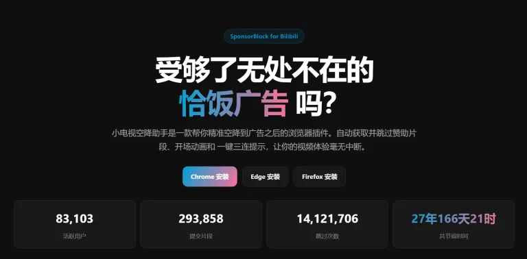 BilibiliSponsorBlock – 小电视空降助手|自动跳过广告 / 片头 / 三连提示