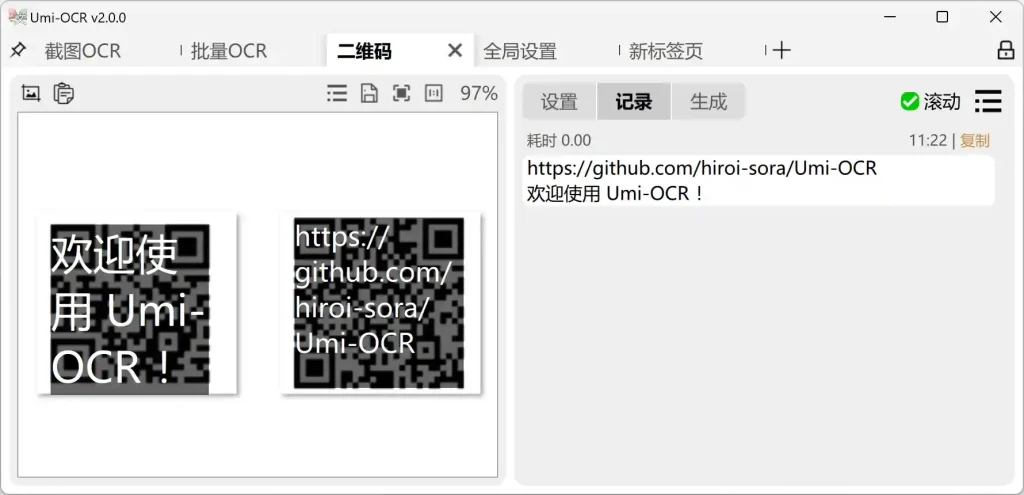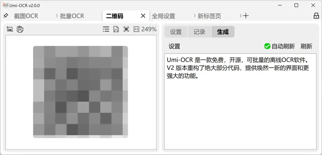 除文字识别外,Umi-OCR 还集成二维码模块: