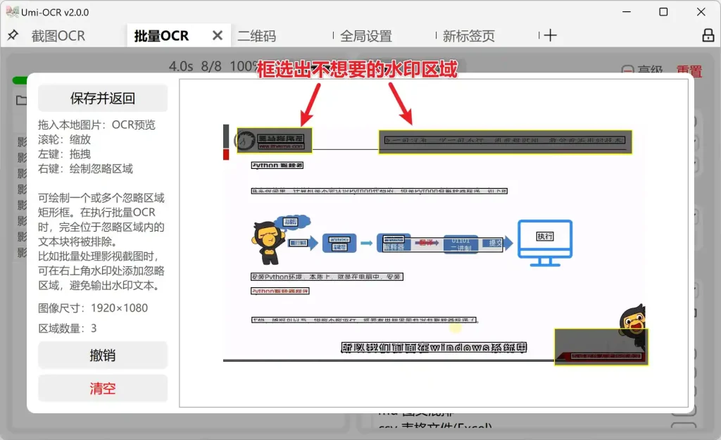 批量OCR中的一种特殊功能,适用于排除图片中的不想要的文字。