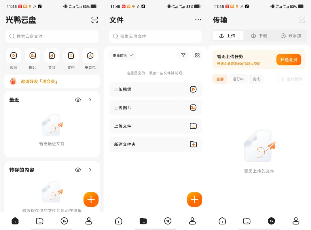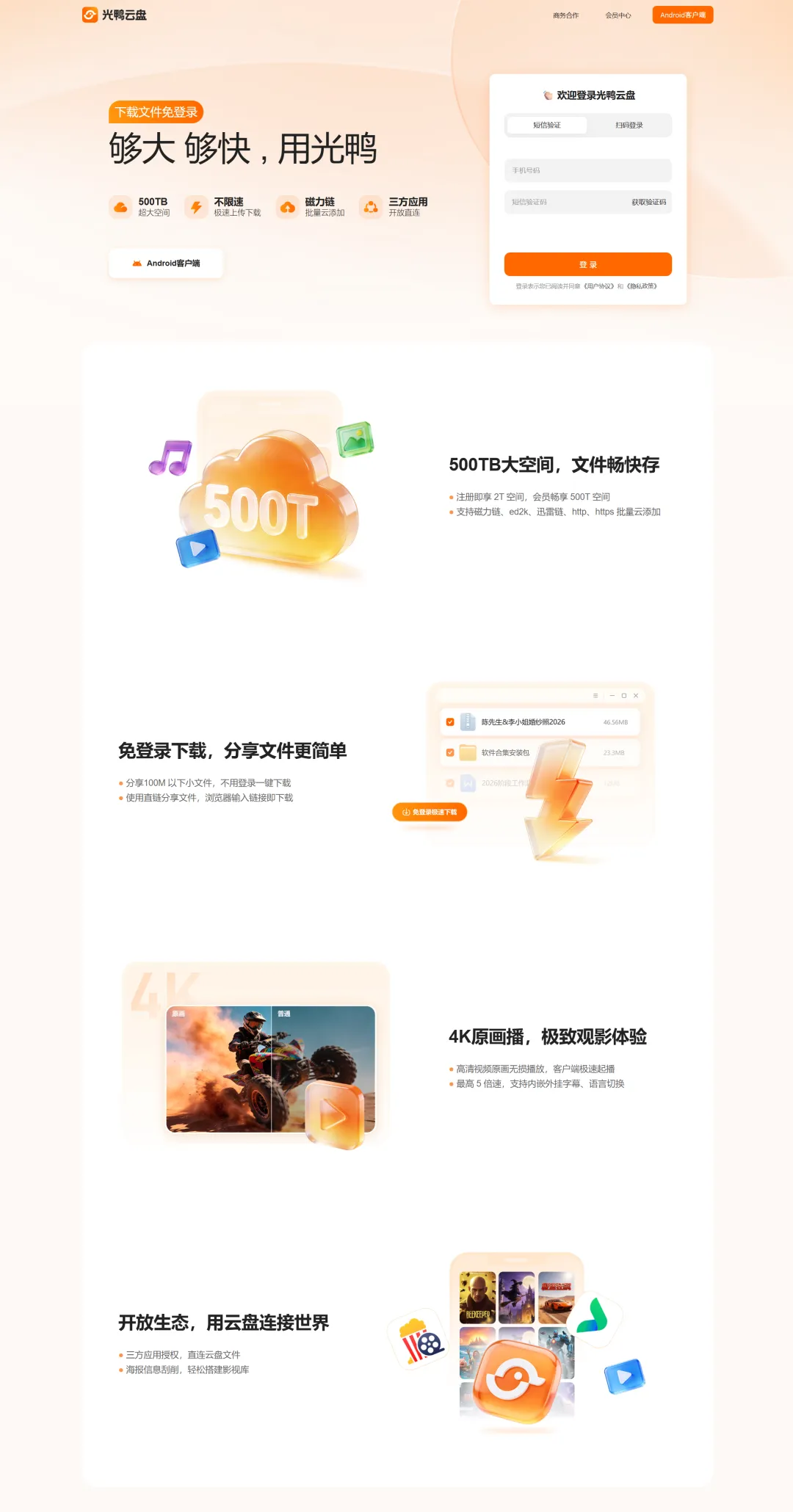 - 注册即享 2T 空间,会员畅享 500T 空间