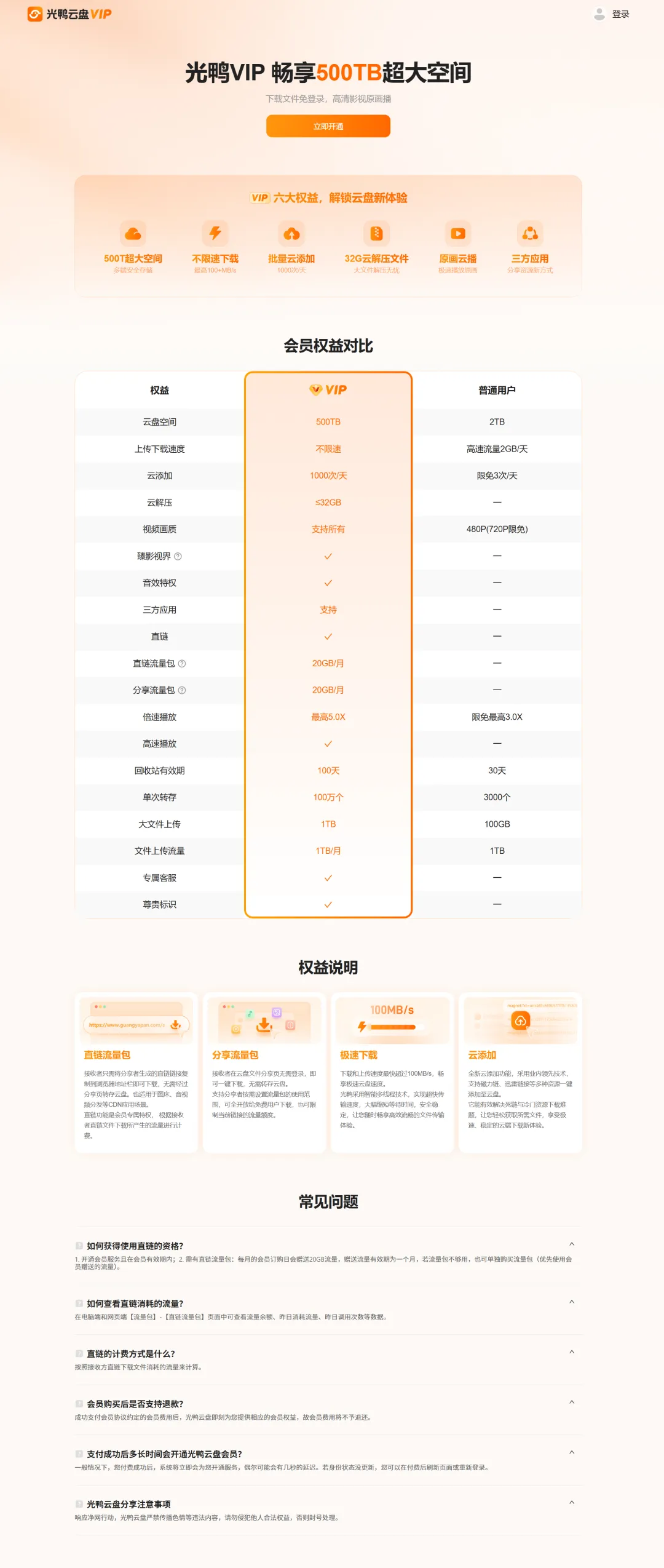 - 邀请好友再送10天VIP:好友通过你的邀请链接注册光鸭云盘,双方各得 10 天 VIP