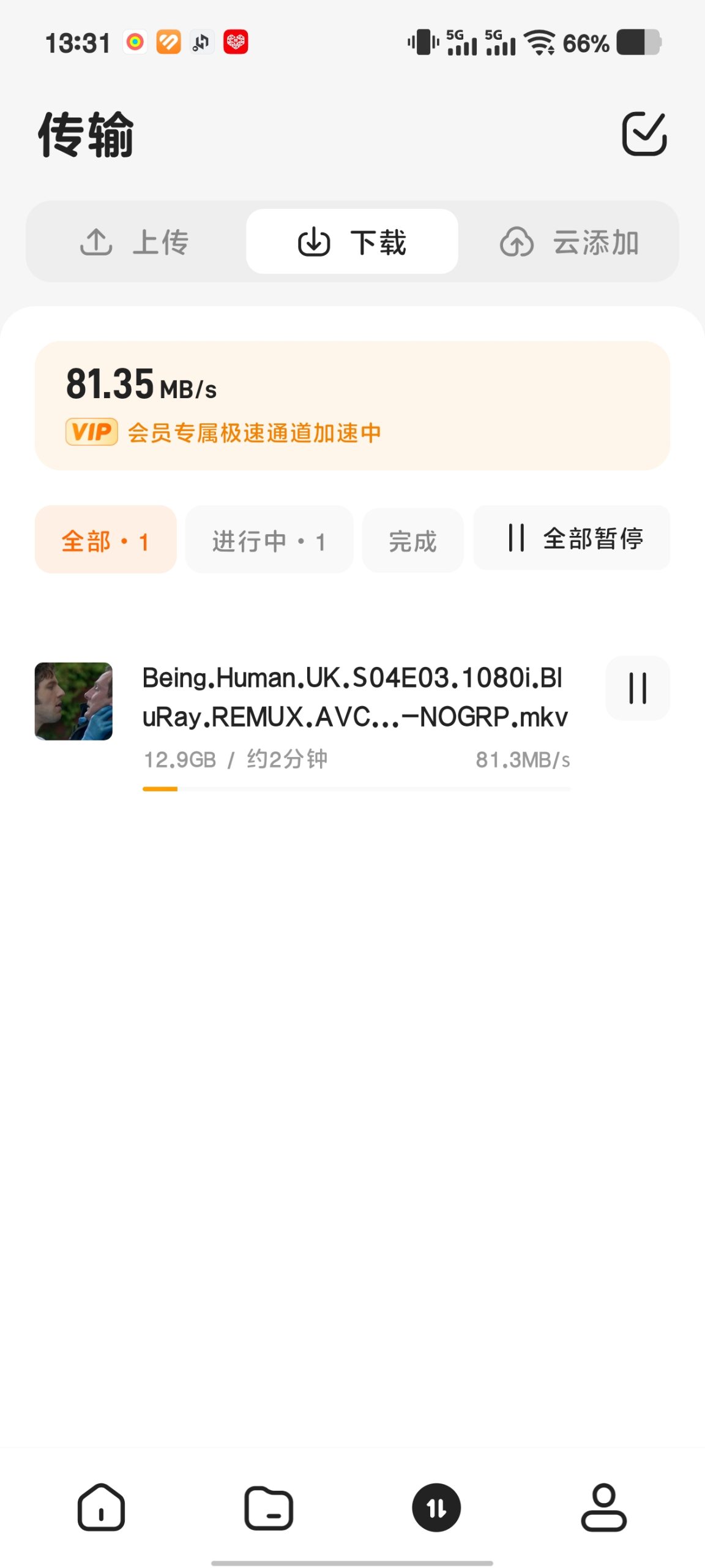测试了一下,我是1000mb带宽,速度能达到81mb/s
