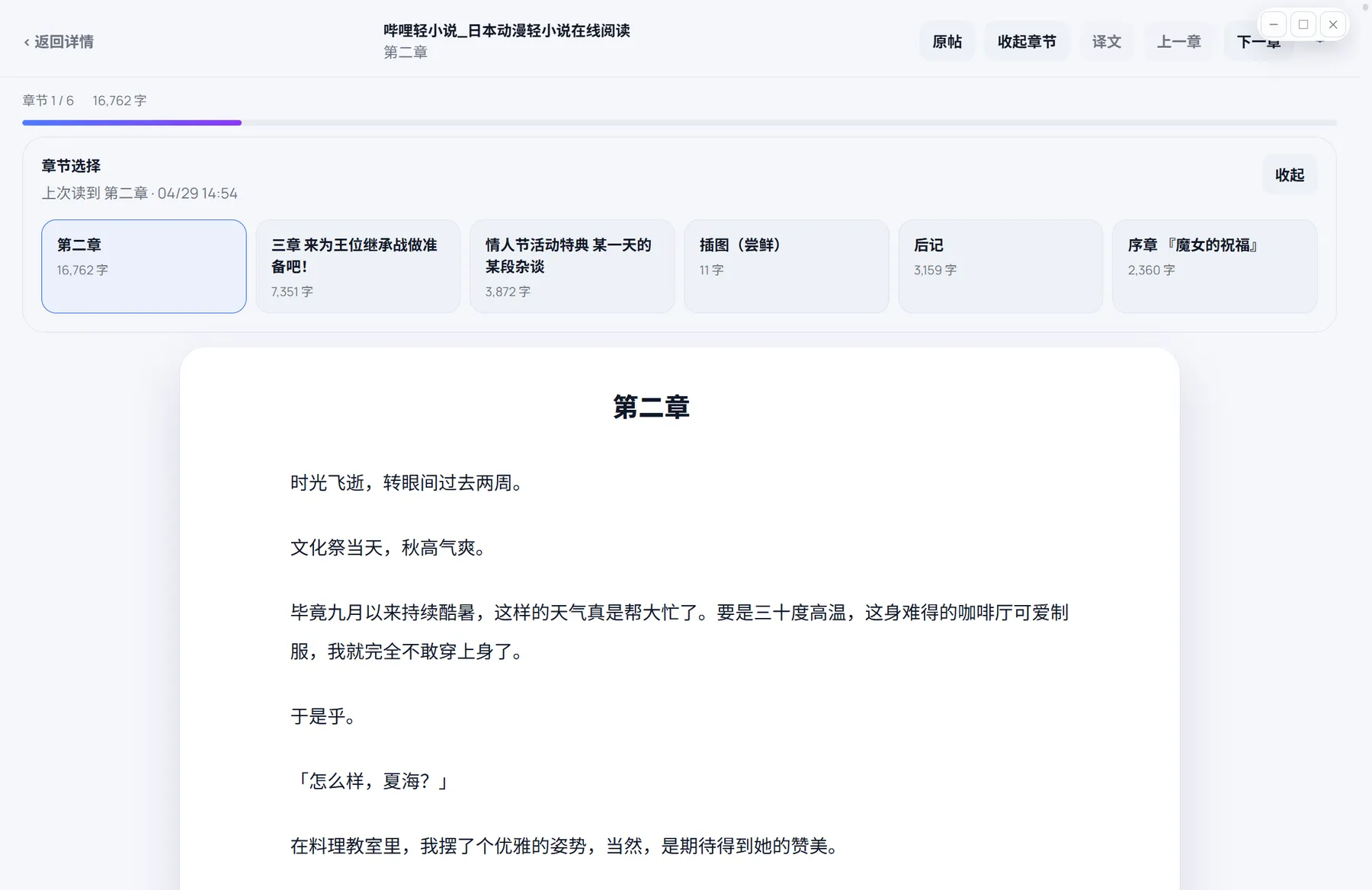 - 网络链接导入:支持小说、漫画链接一键粘贴导入,无需复杂操作,复制作品链接到软件中,即可自动解析目录与章节信息。目前已适配哔哩轻小说、Kakuyomu、成为小说家吧、Pixiv 小说、18comic、哔咔等多个国内外主流站点,覆盖日系、中文等多种类型作品,持续更新适配站点列表,满足用户多元化抓取需求。